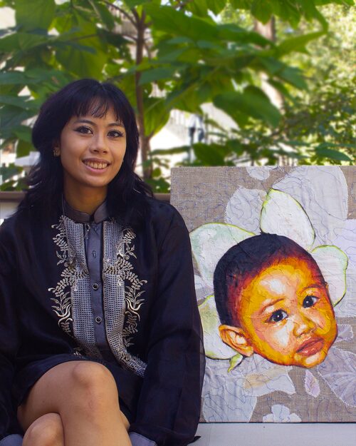 Abby Linatoc Mendoza, ATR-P (they/she) is a second-generation Filipino American multidisciplinary artist from Chicago, IL. With a BFA in Painting from the Herron School of Art + Design and an MA in Art Therapy & Counseling from the School of the Art Institute of Chicago, Abby’s work in non-profit community youth/art education spaces informs their art, which primarily depicts children. Their process involves collage, found object, mending/sewing techniques, and oil painting, bringing together techniques learned from formal, “traditional” education with explorations of recycled/craft materials. Through self-reflexive artwork that examines memory and the act of archiving/collecting, Abby aims to create dialogue on building systems of care.