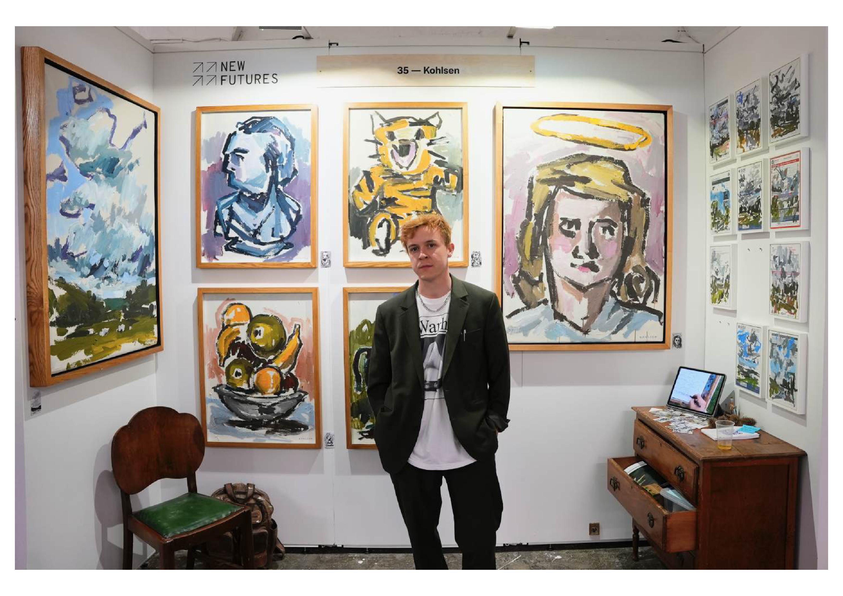Kai Ohlsen is a British contemporary artist from Bath, now based in London. His expressive, instinctive paintings blur chaos and realism, reflecting lived experience over subject. From painting on found objects to scattering works across the city, KOHLSEN playfully challenges what art-making means today.